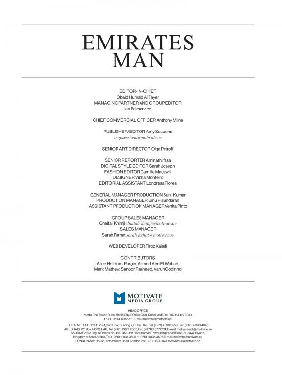 Emirates Man encapsulates the future of men’s lifestyle in the region – knowing that style and substance are intrinsically linked. It’s about looking smart and living smarter.