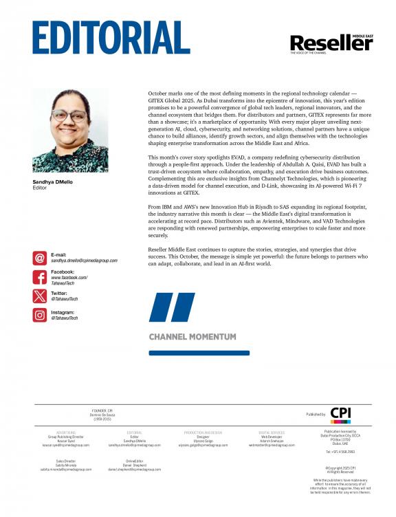 Reseller Middle East has been published by CPI Media Group, the region’s leading IT publisher for the last 20 years. While the IT industry has metamorphosed itself completely over the last decade, the publication continues to play its dominant role of voice of the channel. It has been the ambition of the publication to keep the channel community updated on vendor technology and product developments and vendors updated on the best interests of channel partners over the years. Today, the IT community faces some of the most dramatic transformations taking place around Cloud, storage, wireless, smartphones, touch screens and data. Channel partners are having to adapt their business dramatically and radically to these changes. Many of the golden rules of engagement are being rewritten today based on the corporate user environment, technology dynamics, shrinking market opportunities and increased competition. Reseller Middle East is facing this turmoil head on and continues to engage in dialogue with all sides to bring to its community of readers, both in print and online, valuable feedback, suggestions, opinions and advice on the optimal and best way forward. The Reseller team is proud to be part of the regional channel community and play the role of an unbiased spokesperson and trusted advisor. The publication continues to spin off brand extensions in the form of its annual awards, annual survey, top ten rankings, regional supplements, round table forums, buyer sessions, e-newsletters and monthly supplements. We sincerely believe that 2017 will be a win-win period for both of us!