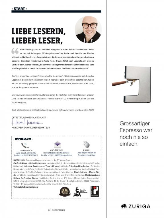 crema macht App-etit auf Kaffee! Lesen Sie Deutschlands meistgelesenes Magazin über Kaffee und Co. Tasten Sie über frisch gemahlene Bohnen und erfahren Sie den Genuss von Deutschlands beliebtestem Heißgetränk – auf Ihrem iPad. crema ist das Lifestyle-Magazin für alle Kaffee-Fans und ambitionierten Home-Barista. Das beliebte Hochglanz-Magazin ist nun endlich auch für das iPad erhältlich. In ausführlichen Reportagen im 3D-Look, Tests und Produktvorstellungen in höchster redaktioneller Qualität helfen den Lesern bei der Auswahl der passenden Espresso-/Kaffeemaschine, erklären welcher Kaffee schmeckt und wo man sie bekommen kann. Natürlich dürfen die schönsten und nützlichsten Accessoires dabei nicht fehlen. crema ist ein Magazin für alle, die rund um das Thema Kaffee eine Anschaffung planen oder einfach mehr über die braune Bohne wissen möchten. crema ist die App für Kaffeegenießer – in völlig neuem Look and Feel. Mit dieser App gibt es garantiert keinen bitteren Nachgeschmack. Schicken Sie uns Ihr Feedback an app@bt.de. Ihre crema-Redaktion
