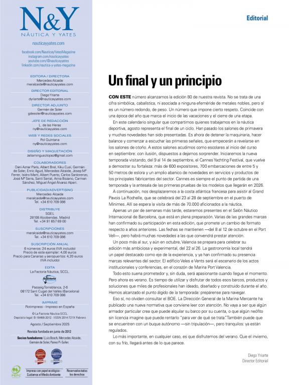 [N&Y] Nautica y Yates M@gazine es una publicación bimestral dedicada a la náutica de recreo a vela y motor y a todo lo relacionado con ella: equipamiento electrónica, motores, diseño, nuevos barcos, crucero, regatas, formación, astilleros... [N&Y] forma parte del jurado que otorga los premios European Boat of the Year y European Powerboat of the Year. En cada número publica pruebas de embarcaciones a vela y a motor realizadas por nuestro equipo de navegantes. En cada número se incluye también la sección especial 'Océanos' dedicada al crucero y la regata oceánica. También incluye la sección fija dedicada al mundo de los super y megayates.