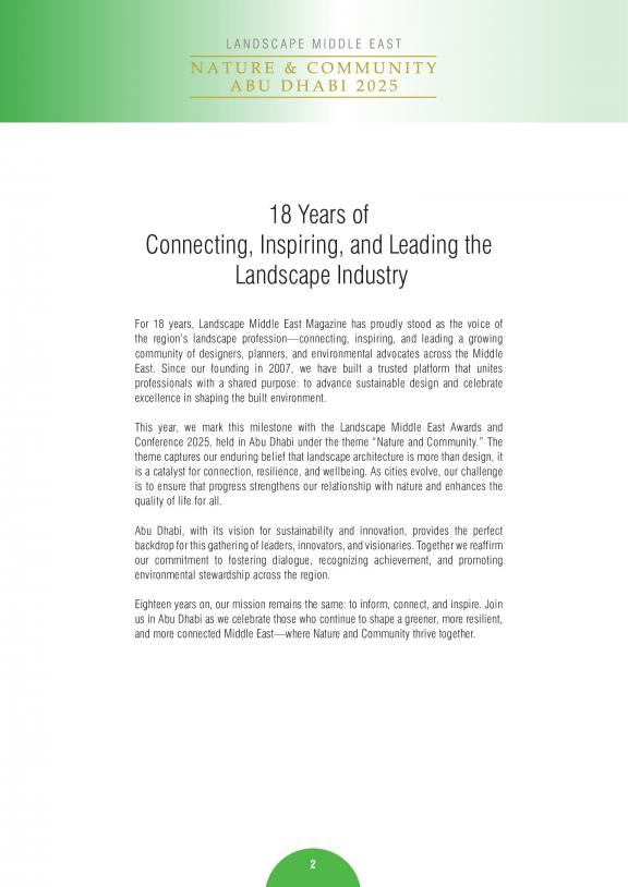 Landscape Magazine is the first specialized monthly publication targeting the landscaping industry in the Middle East.It is distributed to 5,500 professionals in the UAE, KSA, Bahrain, Kuwait, Oman, Qatar, Jordan, Egypt, and others.The list includes government agencies, developers, contractors, traders, consultants, landscape architects, and others in this field.