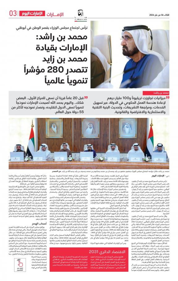 مكنك الآن الاستمتاع بتصفح النسخة الرقمية، والتي هي طبق الأصل عن النسخة الورقية لصحيفة الإمارات اليوم على هاتفكم الذكي أو الجهاز اللوحي أو على شاشة الحاسوب. النسخة الرقمية تتيح لكم تجربة متميزة للعدد اليومي بكل المقالات والأخبار والميزات وبطريقة سلسة حيث يمكنكم التمتع بقراءة صفحاتكم المفضلة مع إمكانية البحث ومشاركة الأخبار في أي وقت وأي مكان كمرادف عن النسخة الورقية. بالإضافة لميزة القراءة بدون إنترنت عند تحميل النسخة المطلوبة وميزات أخرى ستتعرفون عليها عند تحميل التطبيق.تركز صحيفة الإمارات اليوم التي صدر العدد الأول في 19/09/2005 في مجمل محتواها على الشأن المحلي، والقضايا التي تهم القراء العرب في دولة الإمارات العربية المتحدة، ضمن سياسة تلتزم بالشروط المهنية للعمل الصحافي.
