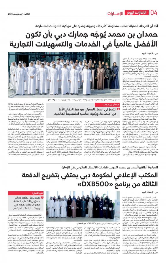 مكنك الآن الاستمتاع بتصفح النسخة الرقمية، والتي هي طبق الأصل عن النسخة الورقية لصحيفة الإمارات اليوم على هاتفكم الذكي أو الجهاز اللوحي أو على شاشة الحاسوب. النسخة الرقمية تتيح لكم تجربة متميزة للعدد اليومي بكل المقالات والأخبار والميزات وبطريقة سلسة حيث يمكنكم التمتع بقراءة صفحاتكم المفضلة مع إمكانية البحث ومشاركة الأخبار في أي وقت وأي مكان كمرادف عن النسخة الورقية. بالإضافة لميزة القراءة بدون إنترنت عند تحميل النسخة المطلوبة وميزات أخرى ستتعرفون عليها عند تحميل التطبيق.تركز صحيفة الإمارات اليوم التي صدر العدد الأول في 19/09/2005 في مجمل محتواها على الشأن المحلي، والقضايا التي تهم القراء العرب في دولة الإمارات العربية المتحدة، ضمن سياسة تلتزم بالشروط المهنية للعمل الصحافي.