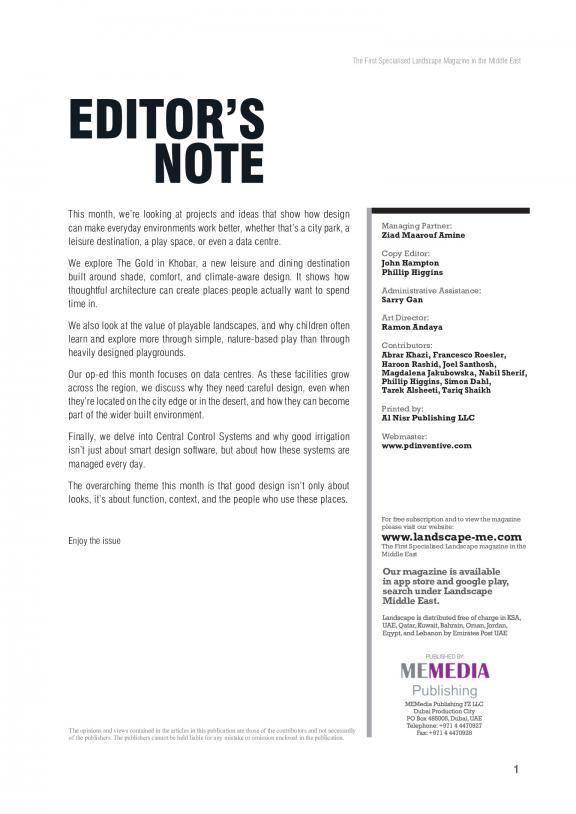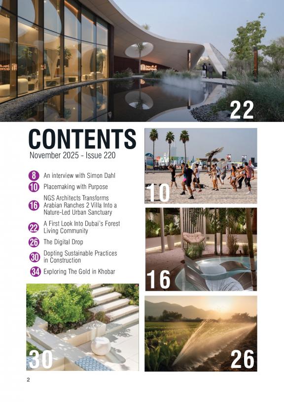 Landscape Magazine is the first specialized monthly publication targeting the landscaping industry in the Middle East.It is distributed to 5,500 professionals in the UAE, KSA, Bahrain, Kuwait, Oman, Qatar, Jordan, Egypt, and others.The list includes government agencies, developers, contractors, traders, consultants, landscape architects, and others in this field.