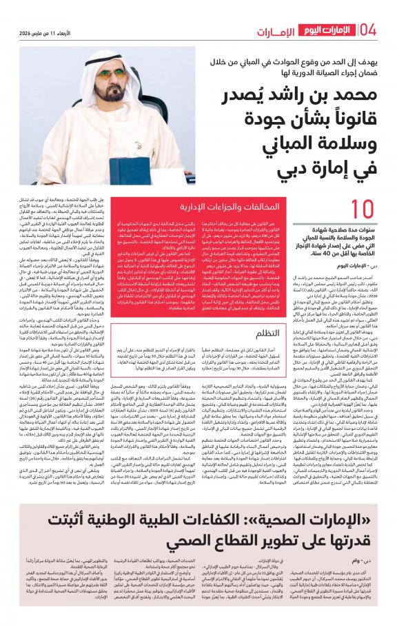 مكنك الآن الاستمتاع بتصفح النسخة الرقمية، والتي هي طبق الأصل عن النسخة الورقية لصحيفة الإمارات اليوم على هاتفكم الذكي أو الجهاز اللوحي أو على شاشة الحاسوب. النسخة الرقمية تتيح لكم تجربة متميزة للعدد اليومي بكل المقالات والأخبار والميزات وبطريقة سلسة حيث يمكنكم التمتع بقراءة صفحاتكم المفضلة مع إمكانية البحث ومشاركة الأخبار في أي وقت وأي مكان كمرادف عن النسخة الورقية. بالإضافة لميزة القراءة بدون إنترنت عند تحميل النسخة المطلوبة وميزات أخرى ستتعرفون عليها عند تحميل التطبيق.تركز صحيفة الإمارات اليوم التي صدر العدد الأول في 19/09/2005 في مجمل محتواها على الشأن المحلي، والقضايا التي تهم القراء العرب في دولة الإمارات العربية المتحدة، ضمن سياسة تلتزم بالشروط المهنية للعمل الصحافي.