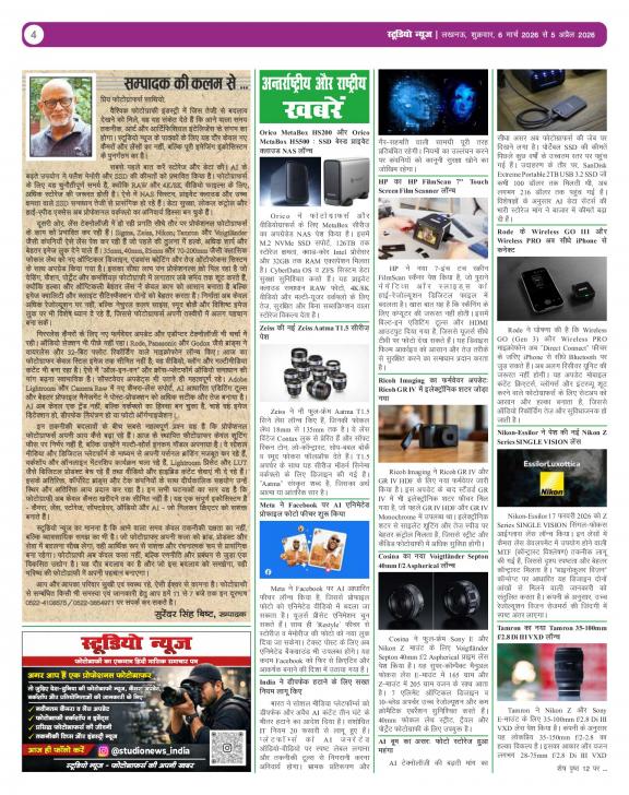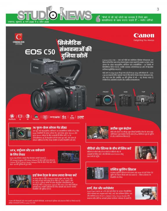 Studio News is monthly 16 pages multi-color tabloid in Hindi. This is India First Photography newspaper, which is published in Hindi, enabling the studios, photographers and other Photography trade related technicians to get first-hand knowledge and understanding about the latest products, help them acquire skill to use the products and make them proud owners. STUDIO NEWS is focusing and distributing hard copy, to the studios in India’s state -Uttar Pradesh RAJASTHAN, GUJARAT, PUNJAB, HARYANA, HIMACHAL PRADESH, UTTARAKHAND, DELHI, BIHAR, CHHATTISGARH, JHARAHAND & MADHYA PRADESH. Circulation of hard copies is approximately 10000 every month. The main objective of The STUDIO NEWS is to educate studios, photographers and technicians with the latest technical knowledge of camera, video and other trade related equipment’s; familiarize them with the editing and other software features and support them with wide range of usages of new technological equipment’s which are quite unknown or ambiguous to them due to language barrier.